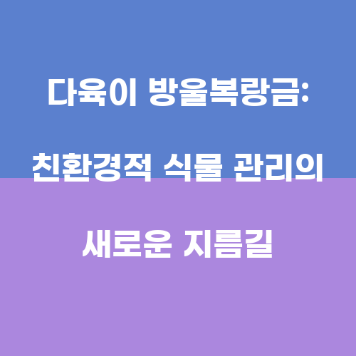 다육이 방울복랑금은 그 특이한 외모와 쉬운 관리 방법으로 많은 사람들에게 사랑받는 식물 중 하나이다. 그 특별한 물 저장 능력과 귀여운 모습으로 인테리어 소품으로도 인기가 많은 방울복랑금은 친환경적인 식물 관리의 새로운 지름길이 될 것이다. 방울복랑금을 키우면서 즐거운 가정 정원을 만들어보는 것은 어떨까? 함께하는 가족들과 이웃들에게 자랑스러운 다육이 방울복랑금을 키워보자. 생활 속 작은 행복을 느낄 수 있는 다육이 방울복랑금, 지금 바로 시작해보세요!