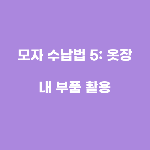 A5: 모자를 보관할 때 부품을 활용하는 방법으로는 옷장 내 문에 모자를 걸 수 있는 훅을 설치하거나, 옷장 내에 모자를 보관할 수 있는 수납 바구니를 활용하는 것이 좋습니다.