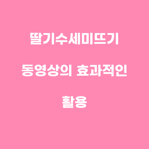 딸기수세미뜨기 동영상의 효과적인 활용