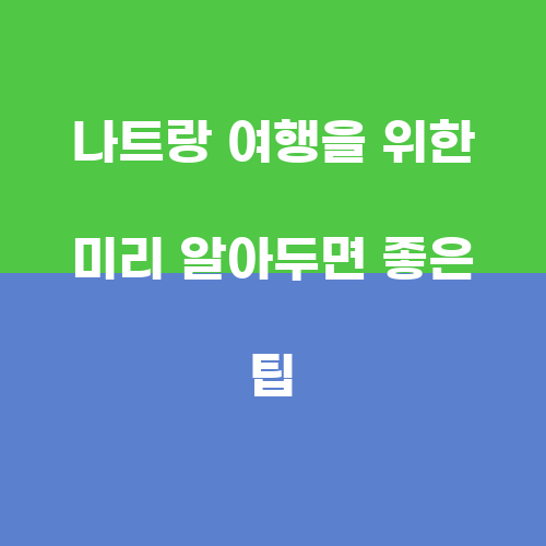 나트랑 여행을 떠나기 전에 미리 알아두면 도움이 되는 팁들을 소개하겠습니다. 첫 번째로 현지 통화인 베트남 동을 환전해가는 것이 좋습니다. 현지에서 현금이 필요할 때를 대비해 베트남 동을 환전해두면 편리할 것입니다. 또한 현지 음식을 즐기고 싶다면 소화가 잘되는 음식을 선택하는 것이 좋습니다.